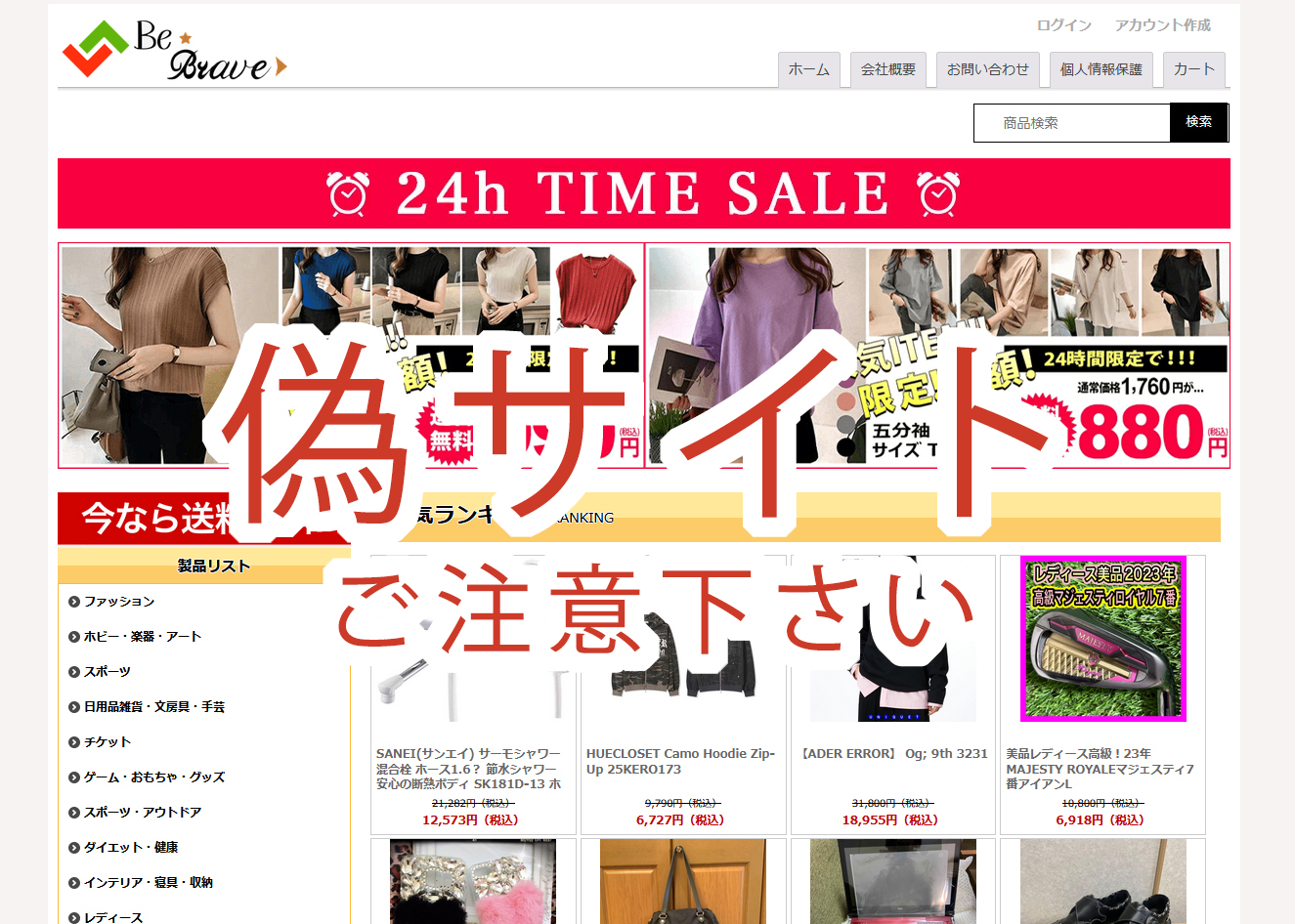 現在、当社の社名や住所等を無断で盗用した「偽通販サイト」の存在が確認されています。